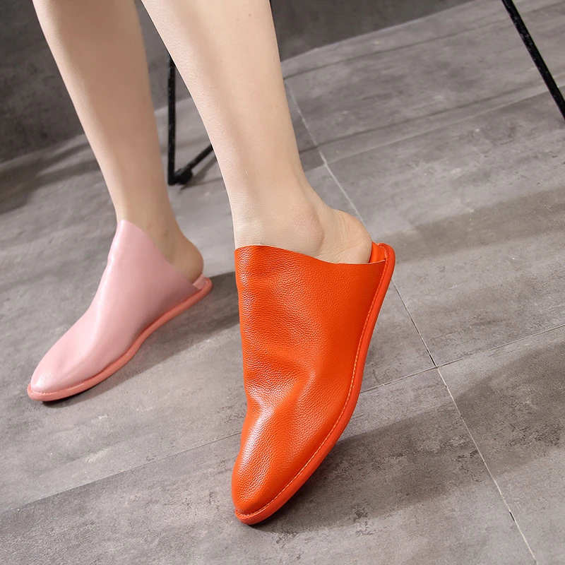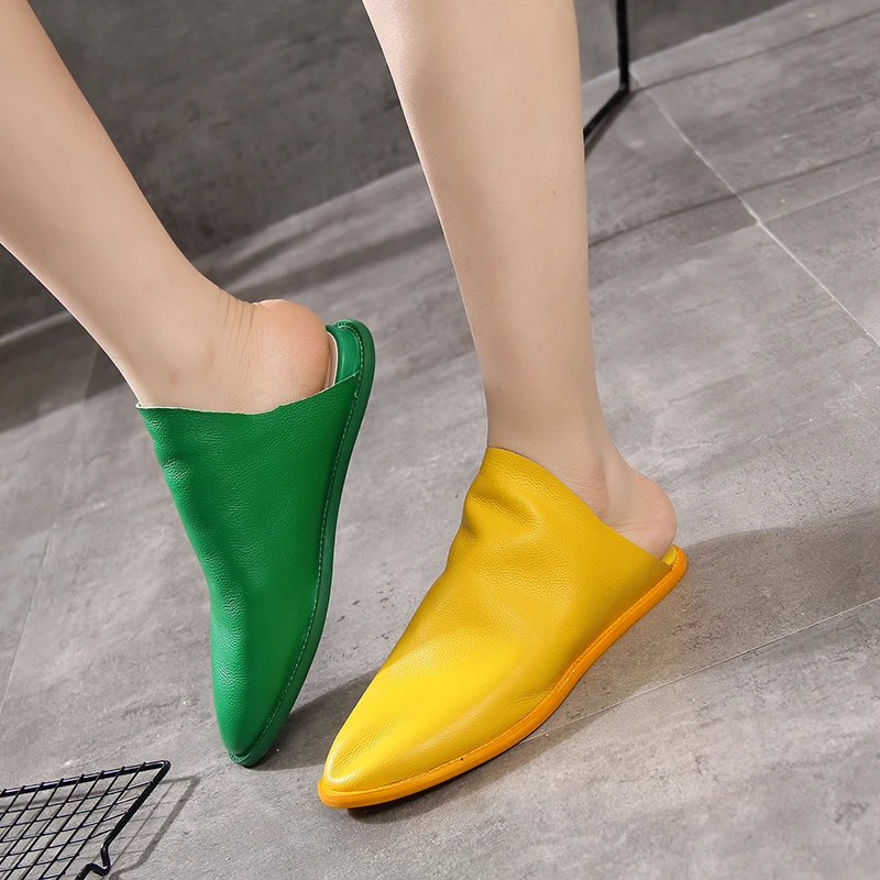 Collection Slippers Genuine Leather Women Shoes Flat Soft Green Orange Pink Shoes Fashion Slides Summer Outdoo