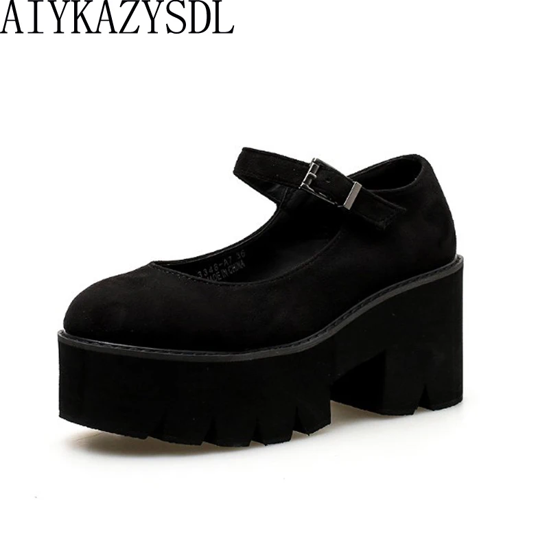 AIYKAZYSDL Casual Shoes Women High Heels Platform Wedge Chunky Heel Preppy Style Buckle Ankle Strap Student Shoes Creepers :Click Here